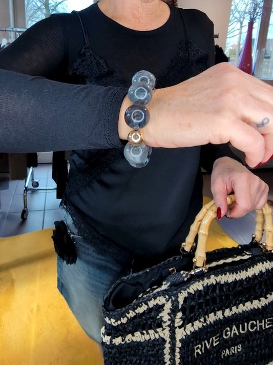 Armband elastisch Acryl Kupfer Groß/Dick XL Perlmutt Grau Blau Gold - GIUNO ARU104-80
