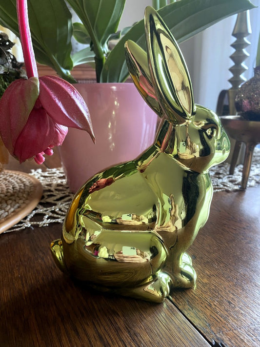 Osterhase glänzend Grün Gold aus Keramik - von Gröner