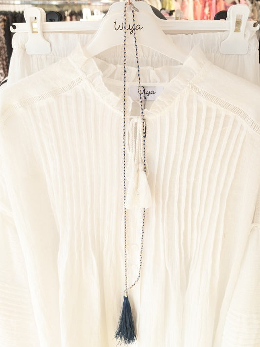 Kette Boho Edelstahl mit Kristallsteinen Buddha Kopf 90cm lang in Blau mit Quast in Blau SSt Bijoux 8112590