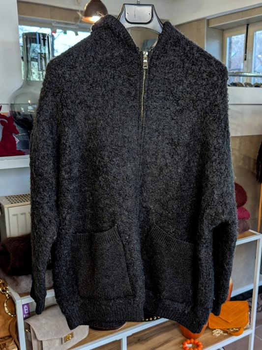 Cardigan Strickjacke Bouclé Dark Grey Goldknöpfe Alpaka Wolle, One Size - von CHOICE C100